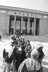 20日,烟台新博物馆开馆试运行首日,馆外排起了50米的长队,不少市民害怕人太多无法观宝,一大早便到馆外排队等候。