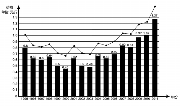 市物价局工作人员介绍,自1995年有记录资料以来,玉米价格现在创下历史新高,从2000年价格低谷起算,11年时间涨了8毛多。