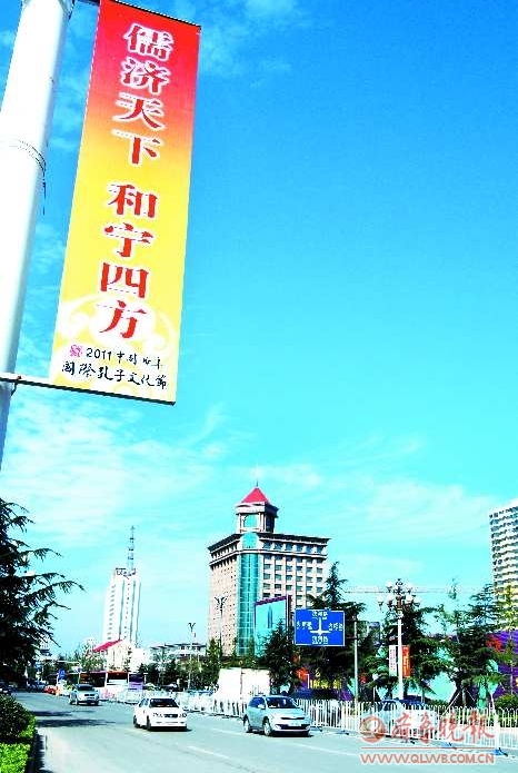 21日,记者在济宁城区洸河路上看到,街道两旁的路灯上已经竖起了孔子文化节的宣传标语。随着孔子文化节的临近,济宁城区精心装扮,营造了浓厚的节日氛围。