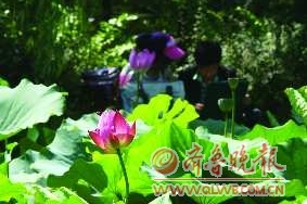 20日,在中山公园,美术专业的学生正在以荷花为素材进行写生。当日,岛城天空放晴,再加上温度适宜,不少市民外出游玩。 本报记者 杨宁 摄影报道