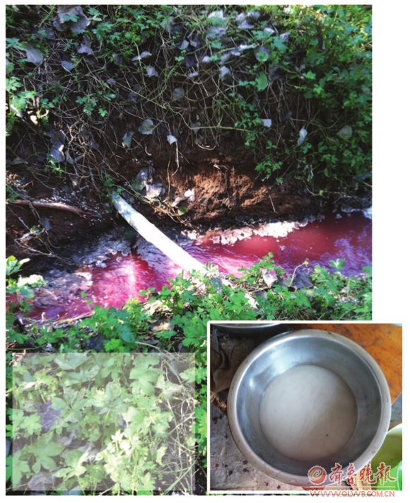 ▲杀鸭厂流出的生产用水,将河水染成血色