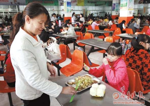 聊城大学2011级新生李阳(右)患有先天性大疱性表皮松解症,19岁的她只有1.53米高,70斤重,皮肤轻微摩擦就反复起水疱。妈妈杨秀梅放下家中的一切,陪女儿住校,照料女儿起居。图为母女俩在大学餐厅吃饭。