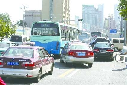 沿北马路由西向东行驶,各种车辆挤占公交车道的现象随处可见。尽管实行了公交优先,但很多小车比较灵活,经常从后面斜插到公交专用道,挤在公交车的前面,公交车在自己的专用车道上还要礼让其他车辆行驶。