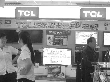 在某家电商场进门的过道上,云电视的广告也被贴在显眼位置。除了海尔、创维之外,TCL等品牌也推出自己的超级智能云3D电视。