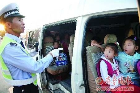近一段时间,济南槐荫区交警大队民警接到居民反映称,他们的孩子在腊山北路上的一家幼儿园上学,幼儿园配备了接送孩子的“校车”,但让家长担心的是,这辆车不是标准的校车,而是一辆白色面包车,而且车上拉着几十个孩子,超载严重,很不安全。