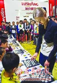 车轮赛放在了齐鲁晚报·生活日报齐鲁秋季房展交易会的会场。无独有偶,齐鲁置业在此展销的齐鲁涧桥一个楼盘叫“维拉的院子”,维拉来到“维拉的院子”,感觉仿佛回到了自己的家,看上去非常激动。在自己的这个“新家”里,维拉和十多名小棋手展开了车轮大战,对弈吸引了众多人前来观战,漂亮的维拉更让众多粉丝围了个水泄不通。活动的现场气氛热烈,整个对弈持续了近两个小时,小棋手中还真不乏高手,其中一个小棋手竟然战胜了世界冠军维拉,很是得意。