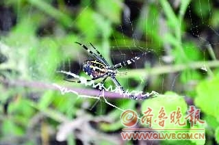 9月19日,我拍到一只蜘蛛在网上用蛛丝“写”出了几串近似英文字母的符号。该蜘蛛属于园蛛科金蛛,又称悦目金蛛,能织出“英文字母”纯属巧合。这种蜘蛛喜欢对网加固,在网上某处重复编织,反复交叉,明显粗于其他地方,看起来像字母或图案,令人称奇。