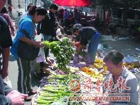 由于台西一路西侧设有217、215路公交总站,非法早市占道让道路拥挤不堪,周边环境也变差了。商贩王强告诉记者,团岛农贸市场开张后非常火爆,不仅仅是市南西部的居民过来买菜,不少东部的居民也坐车过来买菜。“生意好,市场内部又进不去,只好在这摆摊卖菜了。”王强说,在台西一路以及台西纬四路摆摊卖菜的大多是进不了市场的商贩。“还有一些来自郊区的农民。”