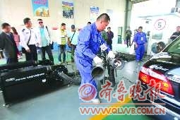 22日,在普集路机动车检测站,20多名老司机参观了检测站新投入使用的瞬态检测设备。9月22日是世界无车日。市南环保分局组织20多名司机来到检测站,其中驾龄最长的已经有29年。这些老司机通过参观机动车排气检测过程,了解尾气所含污染物以及对大气的危害,增强环保意识,倡导低碳出行。本报记者 杨宁 摄影报道
