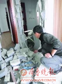 “从24楼到29楼,每层的厨房都塌了,隔墙内连钢筋都没有。”曾经学过建筑的王先生带着记者到这6层楼内一一查看,几乎每层07户的厨房都塌掉了,但只有2807户的居民家中倒塌的隔墙有一根直径不到1厘米的钢筋,在其它楼层中均未发现,墙壁只是砖与水泥的简单堆砌。