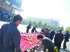 22日,在渤海七路上,世界无车日条幅上引来不少市民关注,并有不少市民响应宣传在条幅上签名。 记者 王丽丽 摄影报道