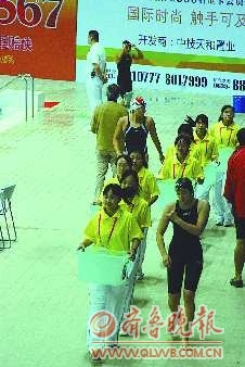 21日上午的女子50米蝶泳,运动员一入水,他们身后的志愿者就列好队,抱着箱子跑向对面。“他们必须跑快点,还不能掉东西,一天下来都累坏了,我一个同学回到宿舍才感到腿疼、腰疼。”孔文君说。