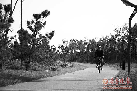22日下午,记者来到位于日照阳光海岸梦幻海滩公园的红色沥青自行车道上,自行车道南北弯弯曲曲地延伸着,走上去让人十分惬意。不过顺着自行车道走了一遍,记者只看到一名自行车爱好者安先生一个人。