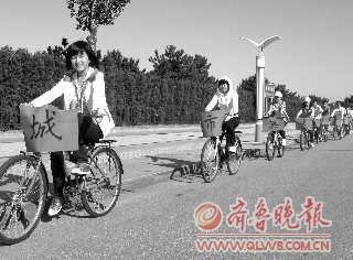 9月22日是“世界无车日”,也是第五个“中国城市无车日”。当日,在烟台市滨海路上,来自烟台大学人文学院中文四班的20多名骑友以“低碳生活,快乐”为口号,骑着单车出行,宣传低碳环保。