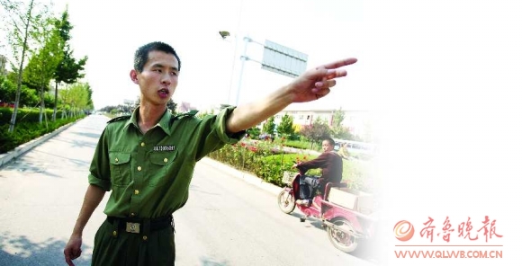 20日晚上,青州女孩小张骑车回家,途中遇四男子抢劫,还险遭侮辱。幸好遇到过路的小伙朱晟见出手相救,以一敌四打跑了歹徒。由于在打斗中钱包不慎丢失,无法回家的他在广场睡了一晚,第二天找朋友帮忙才回到了工作单位。图为朱晟见在事发现场,向记者讲解当时与歹徒搏斗的情况。 本报记者 孙国祥 摄