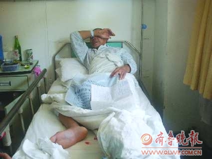 25日,记者在市立医院骨二科见到了刘师傅,由于受伤严重,躺在病床上的刘师傅仍然无法动弹,翻身都要让家人帮忙。记者在他的病历上看到,摔下高墙导致他腰椎、右跟骨和右髌骨等多处骨折。刘师傅说,入院时缴纳了1500多元的住院费,后来医院又通知缴纳2041元的医药费,然而,家境不富裕的刘师傅实在拿不出钱,“大夫说要做手术治疗,最少得花个两三万,老婆带着孩子去亲戚家借钱,根本就借不了多少。”25日,仍然躺在病床上的刘师傅被停了药,想到巨额的医药费和自己虚弱的身体,刘师傅忍不住痛哭失声。看着躺在病床上的儿子,刘师傅的母亲在旁边不停地抹眼泪,“本来是做好事,结果现在弄成这副模样,不光没钱治病,以后一家三口生活都成问题。”