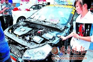在一汽奔腾展区,汽车经销商将一台汽车车头部分的“外衣”拆掉,发动机、刹车盘、独立悬挂系统、高锰钢防撞钢梁,这些消费者最关心的部位,全部裸露出来,引来了不少市民的围观。“我们的目的就是让消费者看明白汽车的内部构造,让消费者心里更明白。”该展区负责人告诉记者。