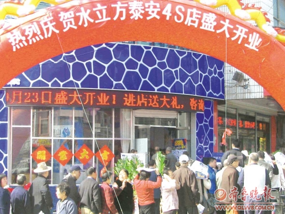 23日上午9点,泰安南关十字路口的水立方泰安4S店盛大开业。据了解,水立方净水机采用奥运水立方游泳馆的先进水处理工艺,能有效去除水中的细菌、杂质、余氯、杀虫剂以及有害重金属。图为前来购买水立方产品的市民在门前排起了长队。王世腾 摄