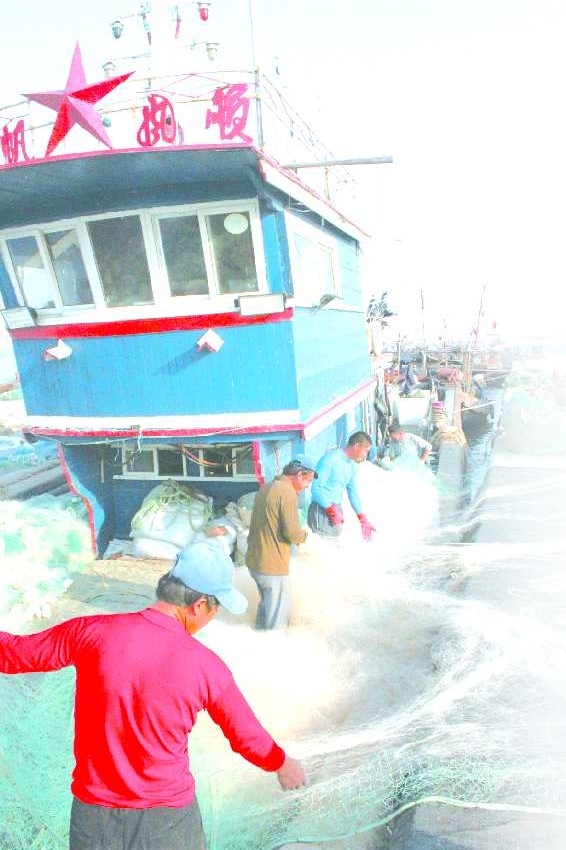 在广利港停船的港边,记者见到一艘渔船正在停船整理网,老板娘告诉记者,现在整理网是准备出海,这网是用来捕螃蟹的,只用了一次,就糟的不成样子,“这一张18米乘36米的网就得300元,这次螃蟹没捕上多少来,钱没赚多少,修网倒是花了不少钱,今年捕上的东西跟去年比少了好多,根本没钱赚。”