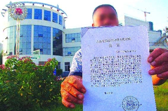 亨通园小区居民向记者展示法院公告。 本报记者 邓兴宇 摄
