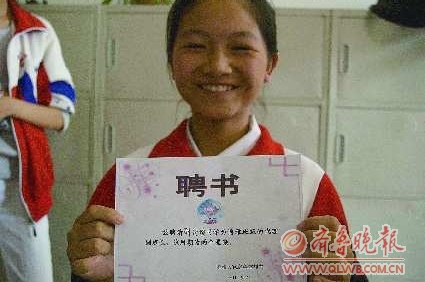 焦老师给他们颁发聘书,聘书上写到“兹聘请孙岩同学为博雅班级的代理班长,试用期为两个星期。”落款为“博雅大家庭全体师生”。焦老师告诉记者,博雅是他们班级的名字,含义是希望同学们能够博学多思,雅言雅行。