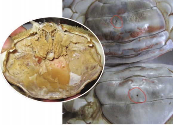 回家后郭女士将螃蟹放在空盆里,十几分钟之后她发现盆子里面有好多水。郭女士开始没觉得奇怪,以为有水是正常的,但是拿起螃蟹仔细翻看之后,她发现了每个螃蟹身上都有一个针眼般大的小孔。郭女士开始怀疑,这些螃蟹会不会是“注水蟹”?郭女士将蟹壳打开,她发现整个蟹黄呈散状。为了进一步确定,郭女士又将螃蟹煮熟,打开蟹盖,发现螃蟹内脏缩小了许多。郭女士查看着网上有关“注水蟹”的新闻,更加怀疑自己购买的可能真的是“注水蟹”。