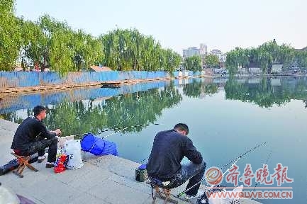 26日,市民在百花洲畔垂钓,水面东侧已经围起施工的挡板。当天,作为泉城特色标志区的核心地带,明府城百花洲片区整治工程正式开工。整个工程预计2012年底完成,将建设五处文化休闲和商业旅游区域,再现“家家泉水、户户垂杨”的景象。