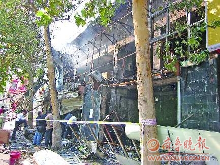 本报96706热线消息(记者 刘德峰) 9月26日凌晨,一阵如“二踢脚”一般的声音,在槐荫区北小辛庄西街的一家超市附近响起。这家超市起火后,火苗迅速蔓延,并引燃了超市两侧的汽配店和洗车店。