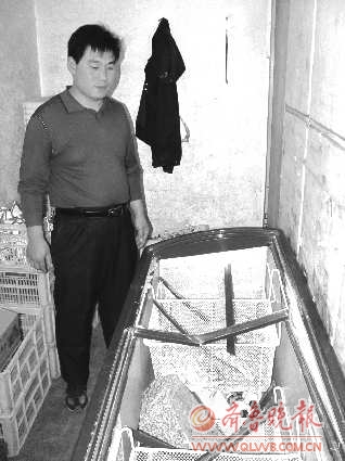 26日,记者来到位于温泉路中段的奶站时看到,该奶站的灯箱被砸破,冰柜里面还有三块大石,最大的约有40斤重,在冰柜底还有不少溢出的牛奶。“冰柜和灯箱加起来损失了有四千元,大概有70包牛奶被砸毁。”奶站老板马先生无奈地说。据马先生介绍,他看出房某已经喝醉,就劝说房某回家睡觉,在没有任何效果后,为了避免更大的损失,马先生只能拨打110报了警。民警赶到时,房某还以自己揭发了“黑幕”向民警炫耀。