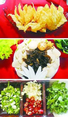 “一人一锅”的小火锅 可以按照各自的喜好选择锅底,面对11种的汤底记者实在不知从哪儿下手,随后热情的酒店经理吴峰先生向记者推荐四款靓汤:菌王保健锅、滋补药膳锅、红日中天锅、顶汤鲍鱼锅。据酒店厨师长介绍,这几款汤底适合秋季食用,火锅汤底都有用特制的浓汤调制而成的,里面含有两年以上的老鸡老鸭、金华火腿、枸杞、鲜人参、和菌类慢火十个小时熬制。