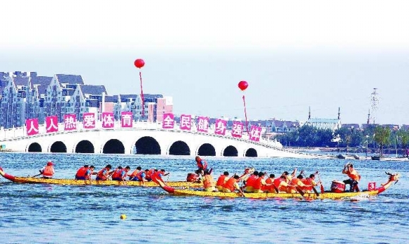 本报9月26日讯(记者 张大宁) 9月26日,山东省第一届全民健身运动会龙舟比赛暨黄河水城龙舟大赛在东营市清风湖举行,共有来自10个地市34支代表队的近400名选手参加比赛。