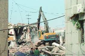 本报9月26日讯(记者 王景坤 张牟幸子) 本报9月22日报道了黄河三路剧场街临街三层楼房拆除无防护措施,危及楼下商户及行人一事,目前,楼房已经改为机械拆除。施工方称,安装防护设施需要商户停业,之前已与商户就停业损失达成一致,不过却未与商户管理方滨州市商贸流通局就停业损失意见一致。
