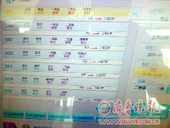 本报枣庄9月26日讯(记者 胡修文 李淼)“我今天在网上订购10月5日的高铁票,竟然没有了。”26日,市民孙女士感到不解,去高铁枣庄站自助购票机上查询,上海虹桥方向的车票竟然全部显示售完。