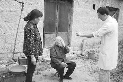26日,临沂市人民医院博爱眼科医院的大夫上门为费县探沂镇蒋家村燕子山后的单克芹老人进行了眼睛健康检查。