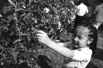 25日,在潍坊市高里街道的枣林里,来自潍坊英皇国际、奎文双语幼儿园的小朋友正在采摘树上的枣子。为了让城市里的孩子感受到秋收,幼儿园组织学生到枣园里采摘枣子。让孩子感受到了秋收的快乐。