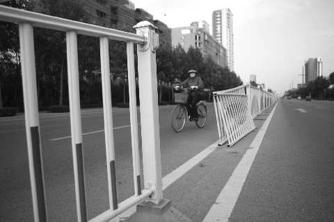 26日,在潍坊市玉清街新华路西侧,十几节的护栏的底座已经丢失,原本笔直的护栏也弯曲了。在玉清街新华路至文化路段,有的护栏底座已经丢失,而且有的还被人拆了下来,不时有行人从缺口处通过,造成一定的安全隐患。