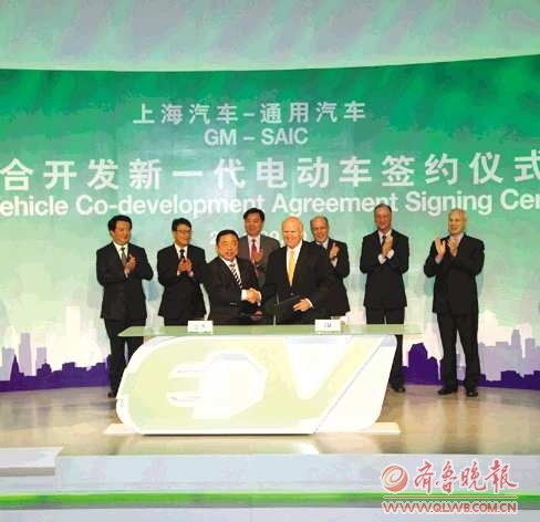 9月20日,上海汽车集团股份有限公司与美国通用汽车公司共同宣布,双方将联合开发新一代电动车平台。通用汽车董事长兼首席执行官艾克森、通用汽车国际运营部总裁李添泽、通用汽车中国公司总裁兼总经理甘文维、上海汽车董事长胡茂元、上海汽车总裁陈虹和上海汽车执行副总裁陈志鑫等双方高层领导出席了本次签约仪式。据悉,未来几年中,上汽、通用以及双方的合资企业将基于联合开发的新一代电动车平台推出各自的新型电动车产品。 (本记)