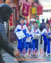 27日,在劈柴院江宁会馆,本报与青岛北京路小学联合组织的红十字方队报纸营销秀活动拉开帷幕。短短一个小时里,70余名学生共卖出近200份《齐鲁晚报》。 本报记者 张晓鹏 摄影报道