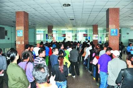 27日10时许,记者在临沂火车站售票大厅看到,购票的乘客已经排起了长龙,这些旅客大多购买10月7日返程的车票。据火车站工作人员介绍,国庆长假预计发送旅客9.2万人,因国庆节假期相对较长,节日期间探亲、学生和旅游客流将会叠加出现,北京、东北方向的车票非常紧张。