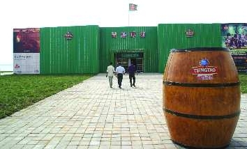 随后,记者走进了位于广场南侧的啤酒大棚。“整个啤酒大棚有6080平方米,包括主体大棚和西侧大棚。主体大棚内有贵宾接待区、青岛啤酒品牌与文化展示区、演艺区三部分组成,是国内最大的啤酒大棚。”负责本届啤酒节筹备工作的青岛森之林文化传播有限公司董事长华泽锦告诉记者。