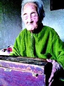 26日,记者来到寿光稻田镇董家稻庄二村何氏老人的家中时,老人正端着自己的“百宝箱”坐在炕上,脸上皱纹纵横,眼睛已睁不开。但身上穿着豆绿色的薄外套、红秋裤,精神状态显得十分好,也十分扎眼。知道有外人来了,老人唠了几句家常。
