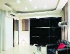 私人空间走道天花板,以壁纸与镜面相异材质及线条的搭配,导引空间延伸更具整体感,同时表现更丰富之空间层次感。