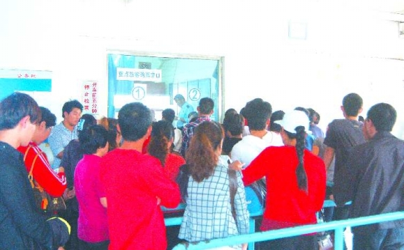 9月27日下午3时许,东营火车站售票厅内人头攒动,前来购买国庆车票的乘客排起了长长的队伍,将本就不大的售票厅站得满满的。据火车站工作人员介绍,9月30日、10月1日南京方向K878/K875次客车车票已经售罄。据了解,本次客流主要以学生为主。 本报记者 段学虎 摄影报道