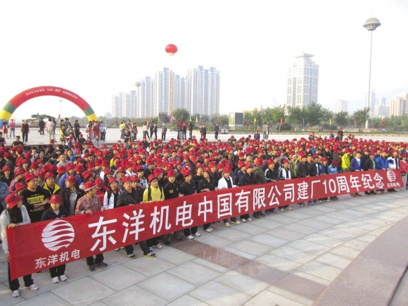 2011年9月24日早上7:时,来自我省烟台和江苏无锡两市的东洋机电中国公司近一千名员工,汇聚在泰山脚下的市政广场。他们将在这里举行公司成立十周年的庆典仪式,然后开始攀登泰山的年庆主题活动。此次活动由泰安康辉旅行社策划组织,是泰安市大力开展“国民休闲汇”活动至今,规模最大的登泰山旅游团队。