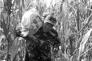 秋收临近,武警菏泽支队组建爱民助民小分队,先后出动官兵200余人次,到田间地头帮助受灾严重和家庭缺少劳动力的百姓抢收玉米,受到驻地群众的高度称赞。图为武警曹县中队的官兵在曹县邵庄镇南青山村,帮助农民抢收玉米。 本报记者 张歆然 通讯员 杨修塔 摄影报道