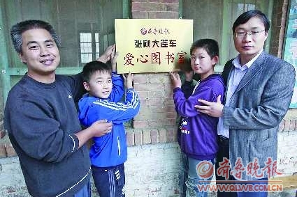 当众人将5000多册图书全都搬下车时,简陋的校舍几乎被占满,本报首个“张刚大篷车”爱心图书室也在这间略显简陋的校舍里挂牌成立了。在大人的帮助下,两个小朋友把写有“齐鲁晚报张刚大篷车爱心图书室”字样的铜牌挂到墙上,一旁老师们也都会心地微笑,“新的学校还没建好,没想到新的图书室先有了。”