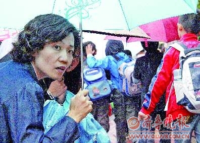 28日,一场秋雨降临济南,下午3时许,在山师附小校门口,众多前来接孩子的家长翘首盼望,希望在学生队伍里尽快找到自己的孩子,让其免受雨淋。