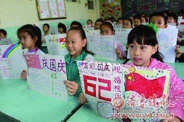 国庆节来临之际,德州市实验小学开展了“知我中华、爱我中华、颂我中华”爱国主义教育主题活动,并通过举办演讲比赛和制作爱国主题手抄报等形式,激发学生们的爱国热情。图为学生们在展示自己制作的手抄报。 本报通讯员 高向阳 摄