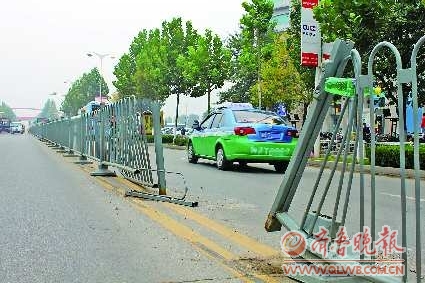 28日上午10时许,在湖滨中大道德州百货大楼附近,道路中间的一节护栏被撞坏,留出一个缺口,成为很多市民过马路的“捷径”。