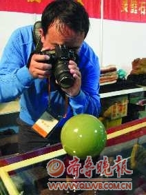 28日上午,2011第二届中国(青岛)国际矿业博览会在胶南市东方金石矿业大厦举行。记者看到,其中的矿产品展览俨然是一场奇石秀,凡是矿物标本的展台前都围满了人,一颗夜明珠前更是被围得水泄不通。据这家公司的经理介绍,这颗夜明珠重达3.8公斤,最低售价1600万元。“3.8公斤夜明珠也属于比较大的,前段时间有颗两公斤夜明珠起拍价就达到几百万元。”经理说,记者看到,放置夜明珠的展台内还有灵璧石、肉石等奇石,价格也不菲。